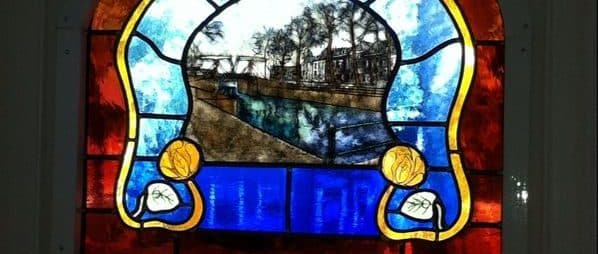 Voor vrienden heb ik een glas in lood raam vervaardigd voor boven de voordeur van hun woning. Zij wonen in Vreeswijk in een oud pand aan het water. Voor het ontwerp heb ik mij laten inspireren door het plateau boven de ramen en natuurlijk de prachtige omgeving. Diego Semprum Nicolas http://diegosemprunnicolas.weebly.com heeft het ontwerp verder uitgewerkt en hij heeft ook het brandschilderwerk gedaan.